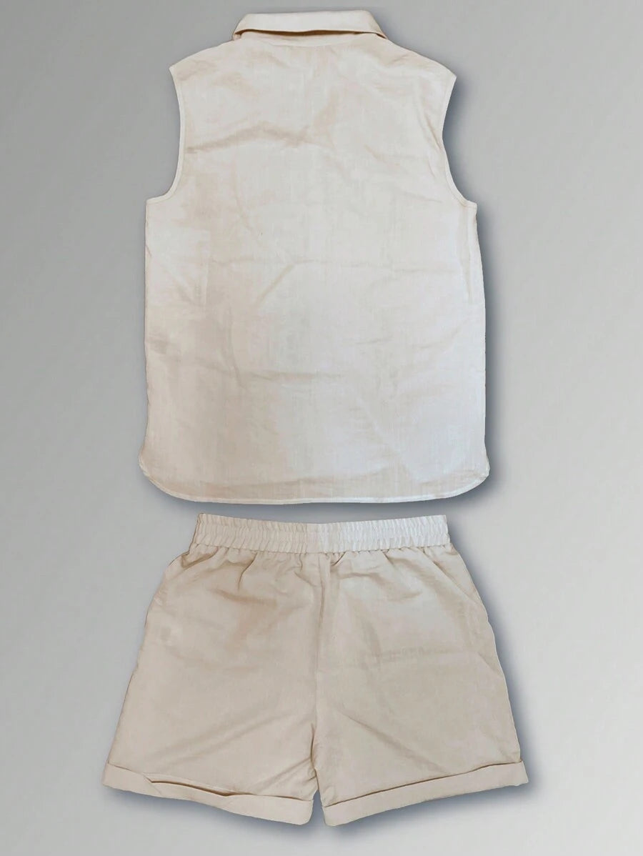 Ensemble chemise boutonnée et short en velours côtelé – Tenue d'été décontractéeEnsemble chemise boutonnée et short en velours côtelé – Tenue d'été décontractée