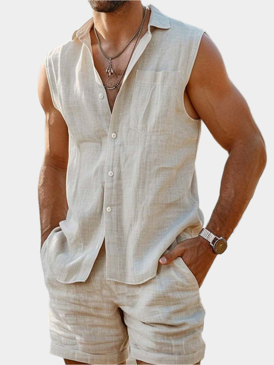 Ensemble deux pièces décontracté en lin – Tenue d'été coordonnée pour hommeEnsemble deux pièces décontracté en lin – Tenue d'été coordonnée pour homme