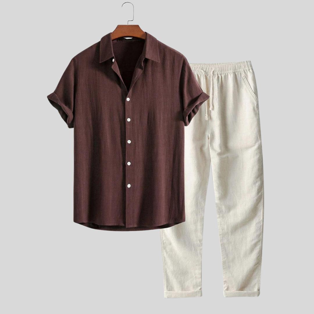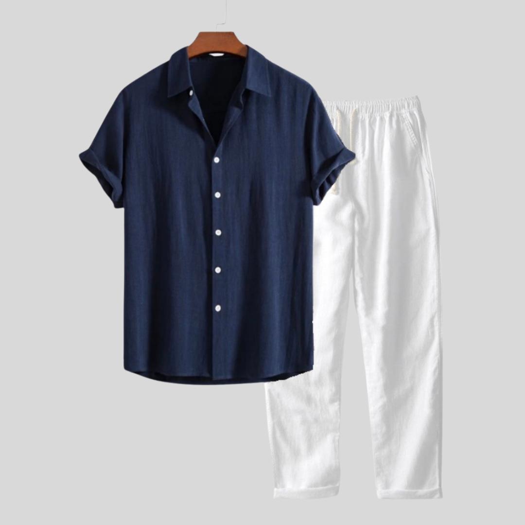 Ensemble chemise et pantalon en lin de luxe pour homme – Vêtements d'été respirantsEnsemble chemise et pantalon en lin de luxe pour homme – Vêtements d'été respirants