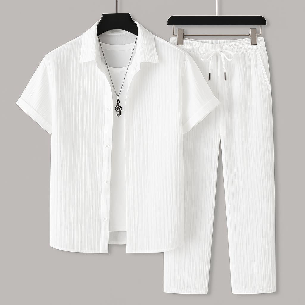 Ensemble chemise boutonnée et pantalon froissés – Ensemble décontracté pour hommeEnsemble chemise boutonnée et pantalon froissés – Ensemble décontracté pour homme